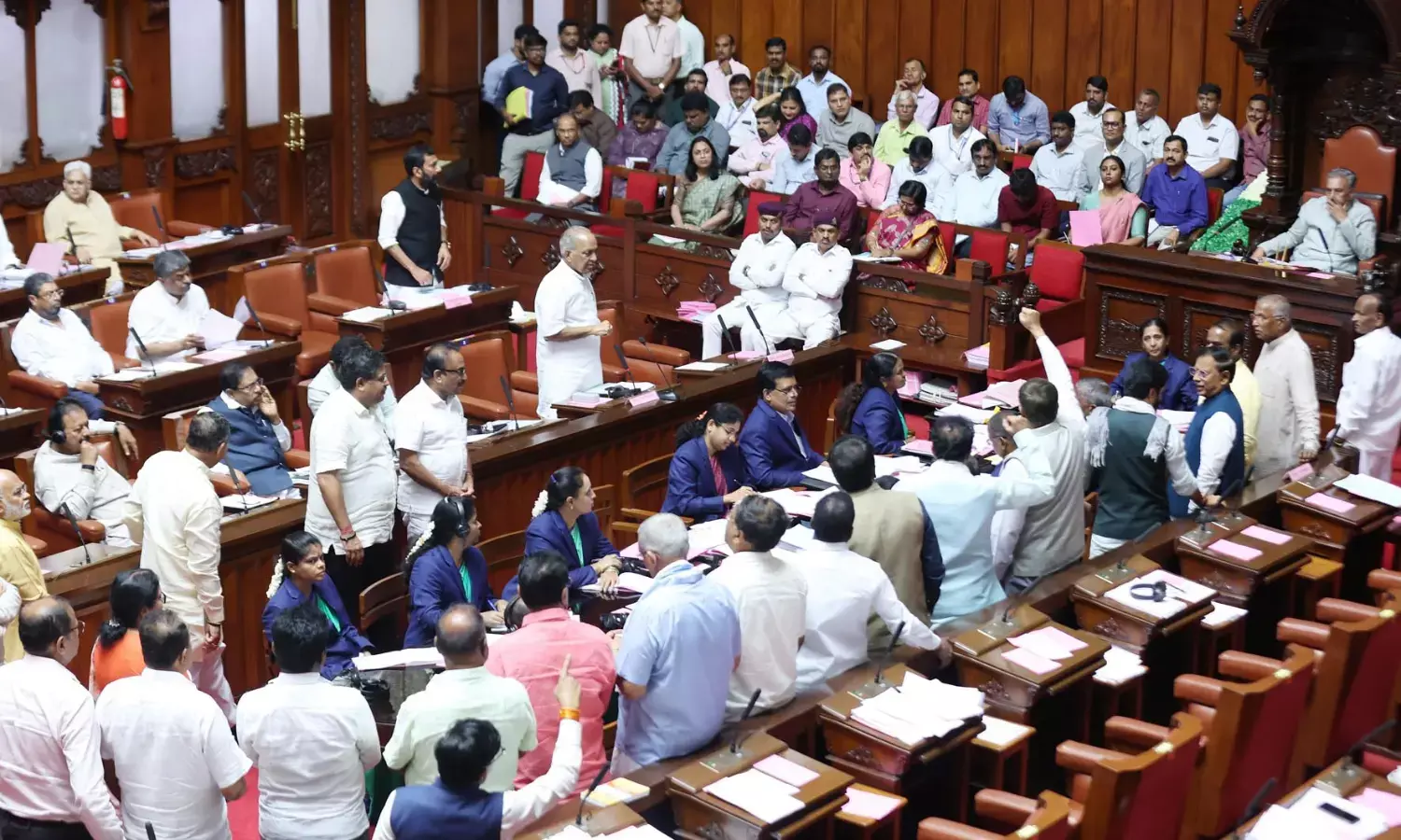 ಬಿಜೆಪಿ ಸದಸ್ಯರು ಪದೇ ಪದೇ ಅಡ್ಡಿಪಡಿಸಿದ್ದಕ್ಕೆ ಆಕ್ರೋಶಗೊಂಡ ಸಿಎಂ, ಲಿಖಿತ ಉತ್ತರ ಓದಿ ಬಿಡುತ್ತೇನೆ, ಕಡತಕ್ಕೆ ಸೇರಿಸಿ ಎನ್ನುತ್ತಾ ಉತ್ತರವನ್ನು ಓದಿದರು. ಸಿದ್ದರಾಮಯ್ಯ ಲಿಖಿತ ಉತ್ತರ ಓದಿದ್ದಕ್ಕೆ ಖಂಡಿಸಿ ಬಿಜೆಪಿ, ಜೆಡಿಎಸ್ ಸದಸ್ಯರು ಸದನದ ಬಾವಿಗಿಳಿದು ಧರಣಿ ನಡೆಸಿದರು. ರಾಜಕೀಯ ಘೋಷಣೆಗಳನ್ನು ಕೂಗಿದರು.