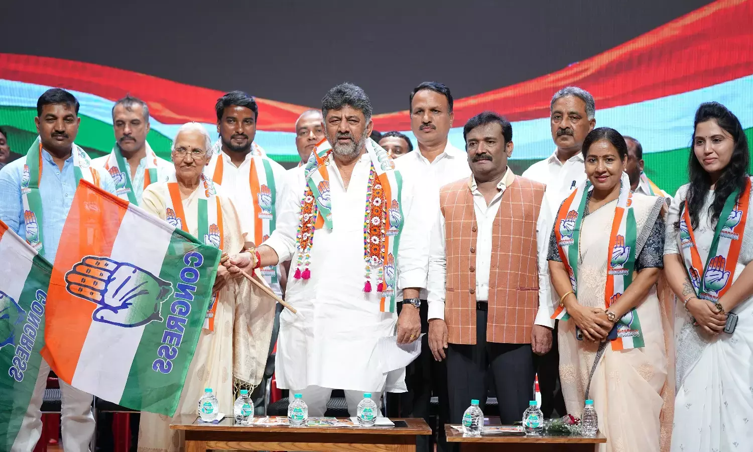 ಭಾರತ್ ಜೋಡೋ ಭವನದಲ್ಲಿ ಶುಕ್ರವಾರ ನಡೆದ ಮಾಜಿ ಸಚಿವೆ ಬಿ.ಟಿ.ಲಲಿತಾ ನಾಯಕ್ ಅವರ ಪಕ್ಷ ಸೇರ್ಪಡೆ ಕಾರ್ಯಕ್ರಮದಲ್ಲಿ ಕೆಪಿಸಿಸಿ ಅಧ್ಯಕ್ಷರೂ ಆಗಿರುವ ಶಿವಕುಮಾರ್ ಭಾಗವಹಿಸಿ ಮಾತನಾಡುತ್ತಿದ್ದರು.