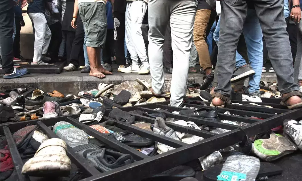 ಕಾಲ್ತುಳಿತ ಸಂಭವಿಸಿರುವ ಚಿನ್ನಸ್ವಾಮಿ ಕ್ರೀಡಾಂಗಣದ ಬಳಿ ರಾಶಿ ಬಿದ್ದಿರುವ ಪಾದರಕ್ಷೆಗಳು