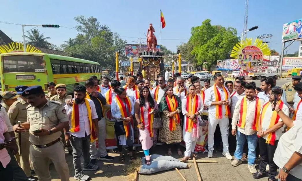 ಡಿಸಿ ವಿರುದ್ಧ ದೂರು ನೀಡಿರುವುದನ್ನು ಖಂಡಿಸಿ ಕನ್ನಡ ಸಂಘಟನೆಗಳು ರಾಣಿ ಚನ್ನಮ್ಮ ವೃತ್ತದಲ್ಲಿ ಧರಣಿ ನಡೆಸಿ, ಮಾನೆಯವರ ಅಣಕು ಶವಯಾತ್ರೆ ಮಾಡಿ ತೀವ್ರ ಆಕ್ರೋಶ ವ್ಯಕ್ತಪಡಿಸಿದವು. ಈ ವೇಳೆ ಅಣಕು ಶವಯಾತ್ರೆ ತಡೆಯಲು ಮುಂದಾದ ಪೊಲೀಸರ ವಿರುದ್ಧವೂ ಕರವೇ ಮುಖಂಡರು ಆಕ್ರೋಶ ಹೊರಹಾಕಿದರು.