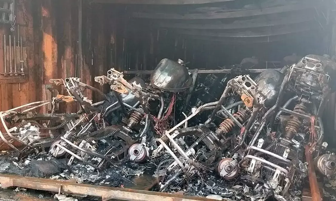 BALLARI | ಗೂಡ್ಸ್ ಲಾರಿ ಬೆಂಕಿಗಾಹುತಿ: 40 ಹೊಸ ಬೈಕ್ ಗಳು ಭಸ್ಮ