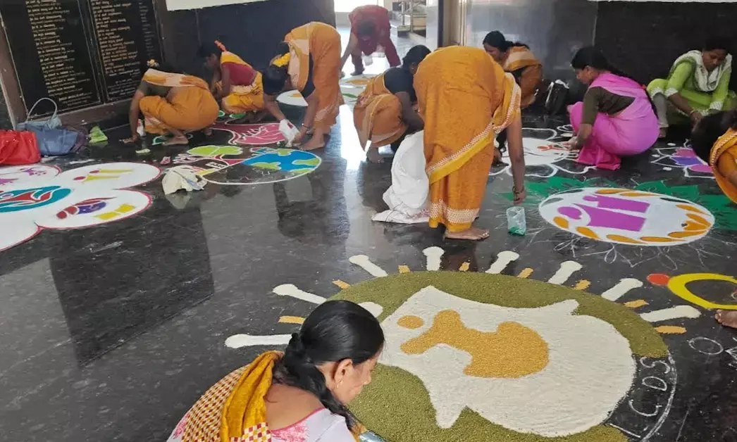 ಬಳ್ಳಾರಿ | ಕೇಂದ್ರ ಪುರಸ್ಕೃತ ಯೋಜನೆಗಳ ಜಾಗೃತಿ ಅಭಿಯಾನ ಅಂಗವಾಗಿ ರಂಗೋಲಿ ಸ್ಪರ್ಧೆ