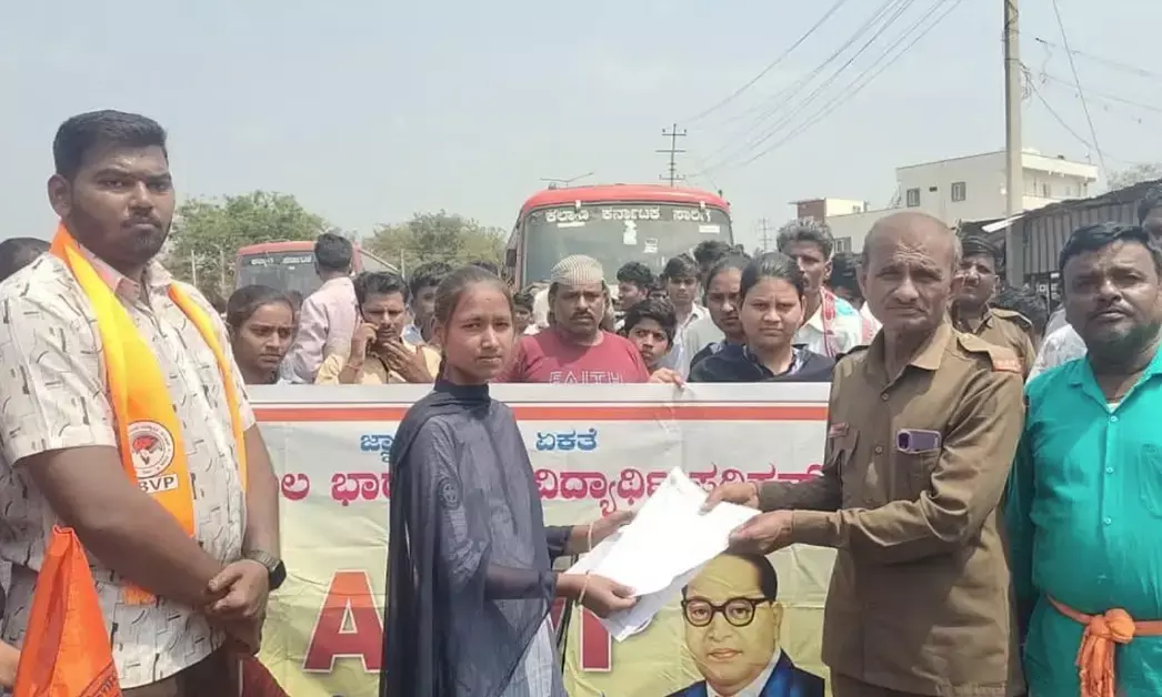 ಬಳ್ಳಾರಿ | ಡಿಪ್ಲೋಮಾ ಕಾಲೇಜು ಮುಂಭಾಗ ಬಸ್ ನಿಲ್ದಾಣಕ್ಕೆ ಆಗ್ರಹಿಸಿ ಎಬಿವಿಪಿ ಪ್ರತಿಭಟನೆ