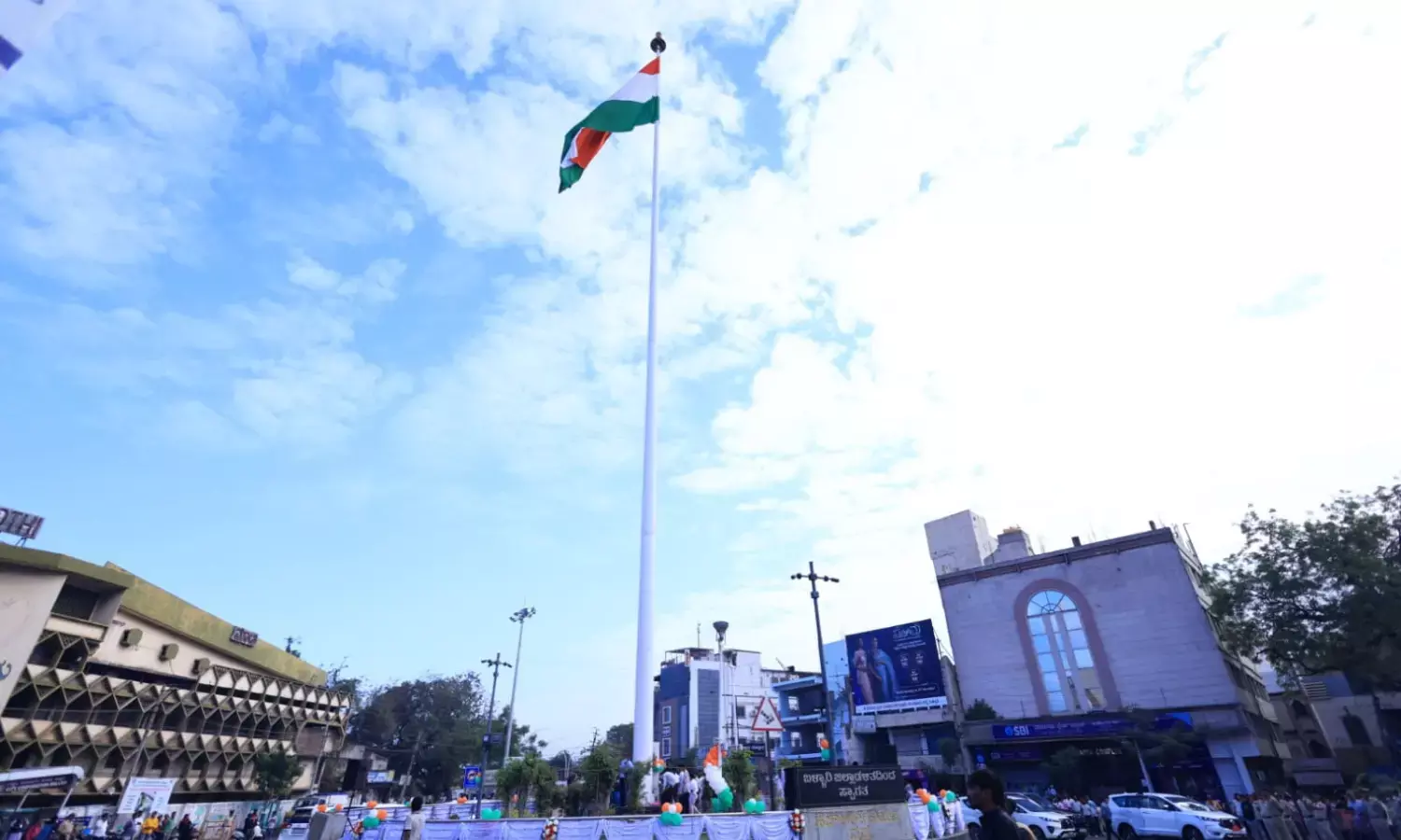 ಬಳ್ಳಾರಿ,ಜ.26: 77ನೇ ಗಣರಾಜ್ಯೋತ್ಸವದ ಅಂಗವಾಗಿ ಪೌರಡಳಿತ ಮತ್ತು ಹಜ್ ಸಚಿವ ರಹೀಂ ಖಾನ್ ಅವರು ನಗರದ ಹೆಚ್.ಆರ್.ಗವಿಯಪ್ಪ ವೃತ್ತದ 150 ಅಡಿ ಎತ್ತರದ ಬೃಹತ್ ಧ್ವಜ ಸ್ತಂಭದಲ್ಲಿ ಸೋಮವಾರ ಧ್ವಜಾರೋಹಣ ನೆರವೇರಿಸಿದರು.