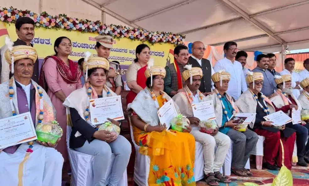 ಕರ್ನಾಟಕ ರಾಜ್ಯೋತ್ಸವದ ನಿಮಿತ್ತವಾಗಿ ವಿಜಯನಗರ ಜಿಲ್ಲೆಯಲ್ಲಿನ ವಿವಿಧ ಕ್ಷೇತ್ರಗಳಲ್ಲಿ ಸೇವೆ ಸಲ್ಲಿಸಿದವರನ್ನು ಗುರುತಿಸಿ ಸನ್ಮಾನಿಸಲಾಯಿತು.
