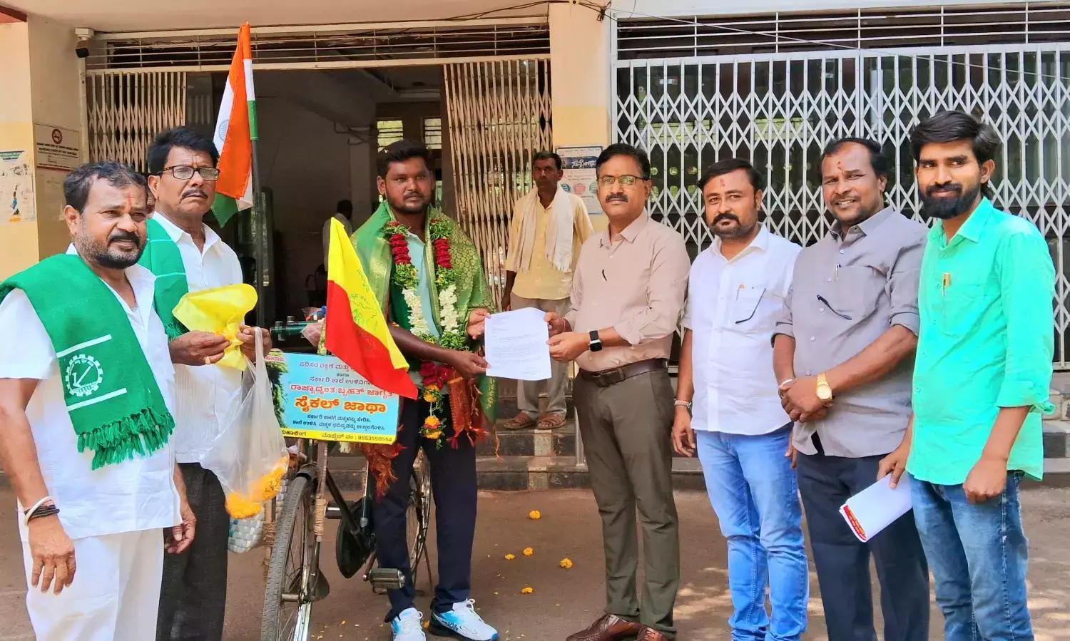 ಇಂದು ಅವರು ಸೈಕಲ್ ಜಾಥಾ ಮೂಲಕ ಜಿಲ್ಲೆಗೆ ಆಗಮಿಸಿ ಅಪರ ಜಿಲ್ಲಾಧಿಕಾರಿ ಶಿವಕುಮಾರ್ ಶಿಲವಂತ್ ಅವರಿಗೆ ಮನವಿ ಪತ್ರ ಸಲ್ಲಿಸಿದರು.