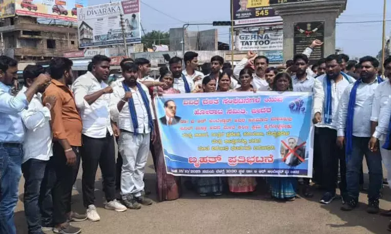 ಬೀದರ್: ದಲಿತರ ಮೇಲಿನ ಹಿಂಸಾಚಾರ, ಅಂಬೇಡ್ಕರ್, ನ್ಯಾಯಾಂಗಕ್ಕೆ ಅವಮಾನ ಖಂಡಿಸಿ ಪ್ರತಿಭಟನೆ