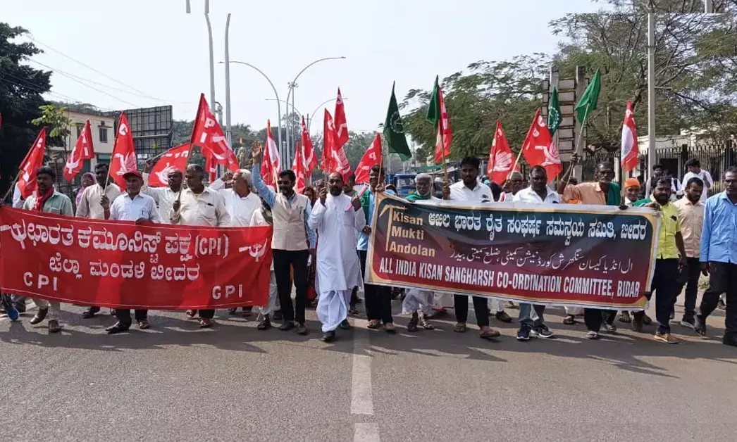 ಬೀದರ್ : ಬಗರ್ ಹುಕುಂ ಸಾಗುವಳಿ ಸಕ್ರಮಗೊಳಿಸಬೇಕು ಎಂದು ಆಗ್ರಹಿಸಿ ಸಿಪಿಐ ಪಕ್ಷ ಹಾಗೂ ರೈತ ಸಂಘರ್ಷ ಸಮನ್ವಯ ಸಮಿತಿಯಿಂದ ಪ್ರತಿಭಟನೆ ನಡೆಸಲಾಯಿತು.