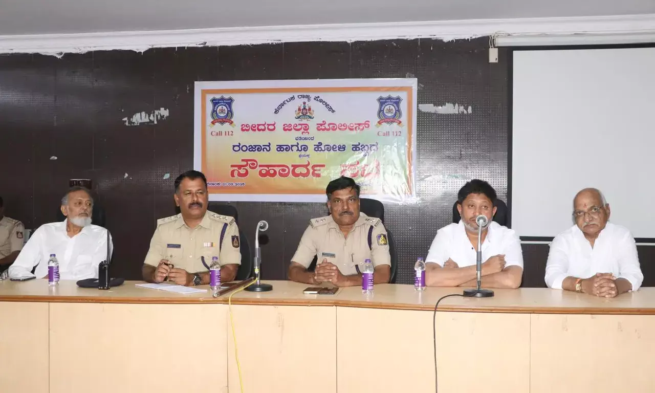 ಬೀದರ್ : ಜಿಲ್ಲಾದ್ಯಂತ ರಮಝಾನ್ ಹಾಗೂ ಹೋಳಿ ಹಬ್ಬಗಳನ್ನು ಶಾಂತಿಯುತವಾಗಿ ಸಹೋದರತ್ವ ಭಾವನೆಯಿಂದ ಕೋಮು ಸೌಹಾರ್ದತೆಗೆ ಯಾವುದೇ ರೀತಿಯಲ್ಲಿ ಧಕ್ಕೆ ಬಾರದಂತೆ ಆಚರಿಸಬೇಕು ಎಂದು ಜಿಲ್ಲಾ ಹೆಚ್ಚುವರಿ ಪೊಲೀಸ್ ವರಿಷ್ಠಾಧಿಕಾರಿ ಚಂದ್ರಕಾಂತ್ ಪೂಜಾರ್ ತಿಳಿಸಿದರು.