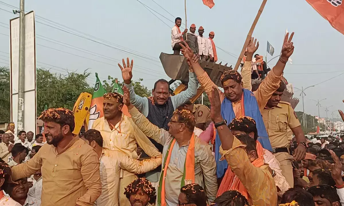 ಮಹಾರಾಷ್ಟ್ರದ ಮುಖೇಡ್ ವಿಧಾಸಭಾ ಕ್ಷೇತ್ರದಲ್ಲಿ ಜಯ ಗಳಿಸಿದ ಬಿಜೆಪಿಯ ಶಾಸಕ ಡಾ.ತುಷಾರ ರಾಠೋಡ ಅವರೊಂದಿಗೆ ಶಾಸಕರಾದ ಪ್ರಭು ಬಿ.ಚವ್ಹಾಣ್ ಅವರು ವಿಜಯೋತ್ಸವದಲ್ಲಿ ಭಾಗವಹಿಸಿದರು.