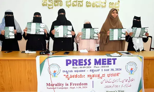 ಬೀದರ್: ಸೆ.30ರವರೆಗೆ ಜಮಾತ್ ಇ ಇಸ್ಲಾಮಿ ಹಿಂದ್ ಸಂಘಟನೆ ವತಿಯಿಂದ ʼನೈತಿಕತೆಯೇ ಸ್ವಾತಂತ್ರ್ಯದ ಭರವಸೆ’ ಎಂಬ ವಿಚಾರ ಕುರಿತು ರಾಷ್ಟ್ರವ್ಯಾಪಿ ಅಭಿಯಾನ ಹಮ್ಮಿಕೊಳ್ಳಲಾಗಿದೆ ಎಂದು ಸಂಘಟನೆಯ ಮಹಿಳಾ ವಿಭಾಗದ ರಾಜ್ಯ ಕಾರ್ಯದರ್ಶಿ ತಸ್ಕಿಲಾ ಖಾನಂ ತಿಳಿಸಿದರು.