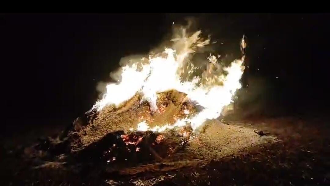 ಸೋಯಾಬಿನ್ ಬಣವೆಗೆ ಬೆಂಕಿ : ಲಕ್ಷಾಂತರ ಮೌಲ್ಯದ ಸೋಯಾ ನಾಶ