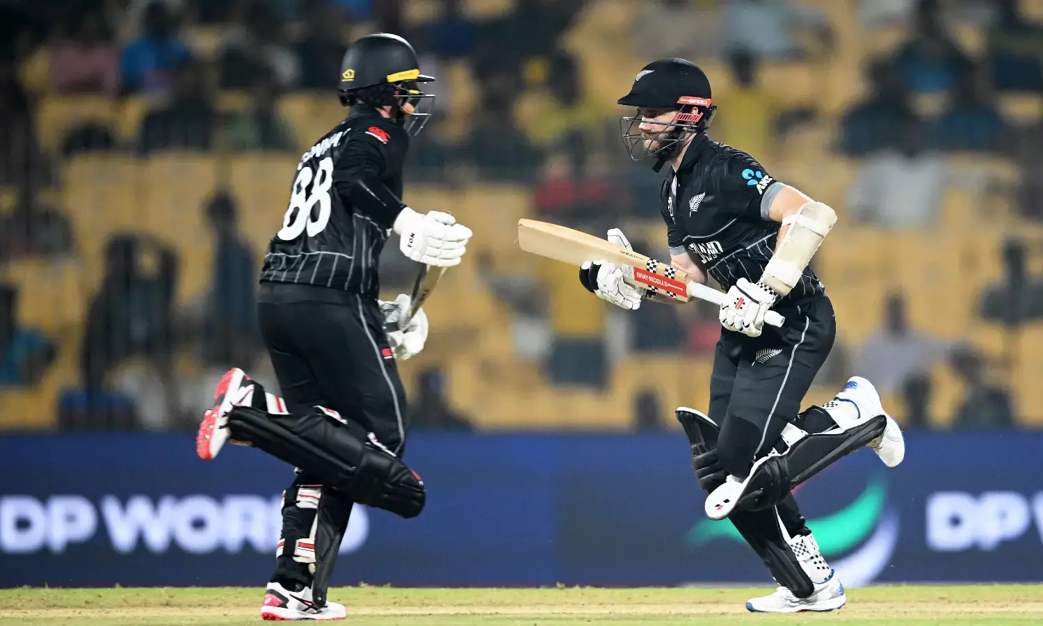 ಲಂಕಾ ನೀಡಿದ್ದ ಅಲ್ಪ ಗುರಿ ಬೆನ್ನಟ್ಟಿವಲ್ಲಿ ನ್ಯೂಝಿಲ್ಯಾಂಡ್ ತಂಡ ಸ್ಟೋಟಕ ಆರಂಭ ಪಡೆಯಿತು. ಪಂದ್ಯವನ್ನು ಬೇಗ ಮುಗಿಸಬೇಕೆಂಬ ಉದ್ದೇಶ ದಿಂದ ಬ್ಯಾಟಿಂಗ್ ಗೆ ಬಂದಿದ್ದ ಕಿವೀಸ್ ಬ್ಯಾಟರ್ಗಳು ಲಂಕಾ ಬೌಲರ್ ಗಳನ್ನು ಮನಬಂದಂತೆ ದಂಡಿಸಿದರು. ಮೊದಲ ವಿಕೆಟ್ ಪತನಕ್ಕೆ, 12.2 ಓವರ್ ಗಳಲ್ಲಿ 86 ರನ್ ಗಳ ಸ್ಟೋಟಕ ಜೊತೆಯಾಟ ನೀಡಿದ್ದ ಕಾನ್ವೆ- ರಚಿನ್ ಜೋಡಿ ಪಂದ್ಯವನ್ನು ಏಕಪಕ್ಷೀಯವಾಗಿ ಇರುವಂತೆ ನೋಡಿಕೊಂಡರು. ಓಪನರ್ ಡೆವೊನ್ ಕಾನ್ವೆ 45 ರನ್ ಗೆ ಚಮೀರ ಬೌಲಿಂಗ್ ನಲ್ಲಿ ಧನಂಜಯ ಡಿಸಿಲ್ವ ಗೆ ಕ್ಯಾಚಿತ್ತು ಔಟ್ ಆದರೆ, ರಚಿನ್ ರವೀಂದ್ರ 42 ರನ್ ಗಳಿಸಿ ದೊಡ್ಡ ಮೊತ್ತ ಪೇರಿಸಲು ಹೋಗಿ ತೀಕ್ಷಣ ಸ್ಪಿನ್ ಮೋಡಿಗೆ ಬಲಿಯಾದರು. ಮೂರನೇ ಕ್ರಮಾಂಕದಲ್ಲಿ ಬ್ಯಾಟಿಂಗ್ ಬಂದಿದ್ದ ನಾಯಕ ಕೇನ್ ವಿಲಿಯಮ್ಸನ್ ಕೇವಲ 14 ರನ್ ಬಾರಿಸಿ 18.2 ಓವರ್ ನಲ್ಲಿ ಮ್ಯಾಥೂಸ್ ಬೌಲಿಂಗ್ ನಲ್ಲಿ ಬೌಲ್ಡ್ ಆದರು. ಮಾರ್ಕ್ ಚಾಪ್ಮನ್ 7 ರನ್ ಗೆ ರನೌಟ್ ಆದರು.