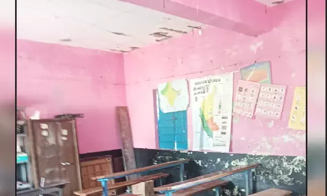 ಚಾಮರಾಜನಗರ | ಶಿಥಿಲಾವಸ್ಥೆಯಲ್ಲಿ ಸರಕಾರಿ ಪ್ರಾಥಮಿಕ ಶಾಲೆ | ಮಕ್ಕಳನ್ನು ಶಾಲೆಗೆ ಕಳುಹಿಸದ ಪೋಷಕರು