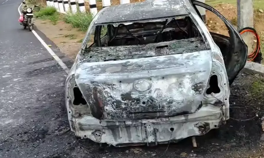 ಚಾಮರಾಜನಗರ | ಶಾರ್ಟ್ ಸರ್ಕ್ಯೂಟ್ ನಿಂದ ಹೊತ್ತಿ ಉರಿದ ಕಾರು