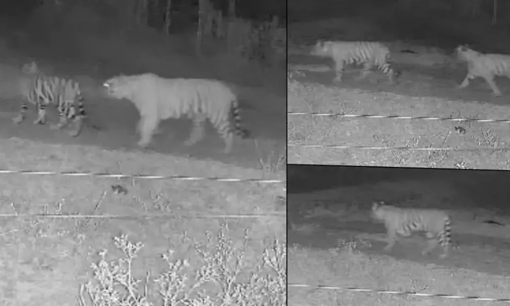 5 ಹುಲಿಗಳು ಹಾದುಹೋದ ದೃಶ್ಯ ನಂಜದೇವನಪುರ ಗ್ರಾಮದ ಕುಮಾರಸ್ವಾಮಿ ಎಂಬುವರ ಜಮೀನಿನ ಸಿಸಿಟಿವಿಯಲ್ಲಿ ಸೆರೆಯಾಗಿದೆ. ಚಾಮರಾಜನಗರ ತಾಲೂಕಿನ ನಂಜದೇವಪುರದ ಜಮೀನಿನ ಪಕ್ಕವೇ ಆನೆಮಡುವಿನ ಕೆರೆಯಿದ್ದು, ಅಲ್ಲಿಂದ 5 ಹುಲಿಗಳು ತೆರಳುವಾಗ ಸಿಸಿಟಿವಿಯಲ್ಲಿ ದೃಶ್ಯ ರೆಕಾರ್ಡ್ ಆಗಿದೆ.
