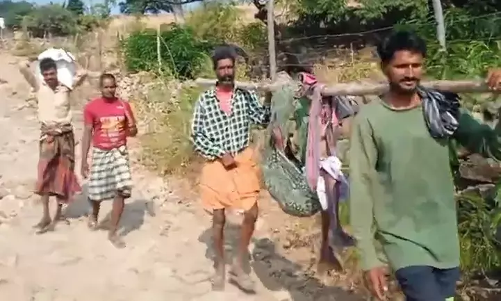 ಚಾಮರಾಜನಗರ : ಕರ್ನಾಟಕ ಗಡಿ ಭಾಗವಾಗಿರುವ ಹನೂರು ತಾಲೂಕಿನ ಮಲೆಮಹದೇಶ್ವರ ಬೆಟ್ಟ ಕಾಡಂಚಿನಲ್ಲಿರುವ ಇಂಡಿಗನತ್ತ ಗ್ರಾಮದಲ್ಲಿ ಸಾರಿಗೆ ವ್ಯವಸ್ಥೆ ಇಲ್ಲದೆ ಆಸ್ಪತ್ರೆಗೆ ರವಾನಿಸಲು ಗ್ರಾಮಸ್ಥರು ಡೋಲಿಗೆ ಮೊರೆ ಹೋದಂತಹ ಘಟನೆ ವರದಿಯಾಗಿದೆ.