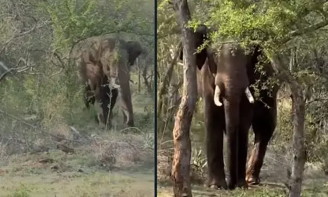 ಚಾಮರಾಜನಗರ: ರೊಚ್ಚಿಗೆದ್ದ ಸಲಗ; ಸಫಾರಿ ವಾಹನ ಮೇಲೆ ದಾಳಿಗೆ ಯತ್ನ