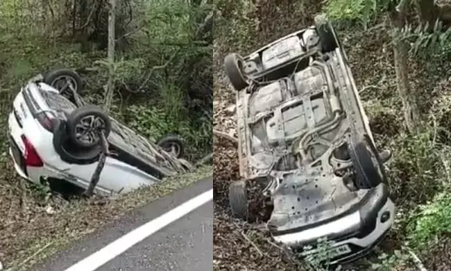 ಚಾಮರಾಜನಗರ: ಹಳ್ಳಕ್ಕೆ ಉರುಳಿದ ಕಾರು; ಅಪಾಯದಿಂದ ಪ್ರಯಾಣಿಕ ಪಾರು
