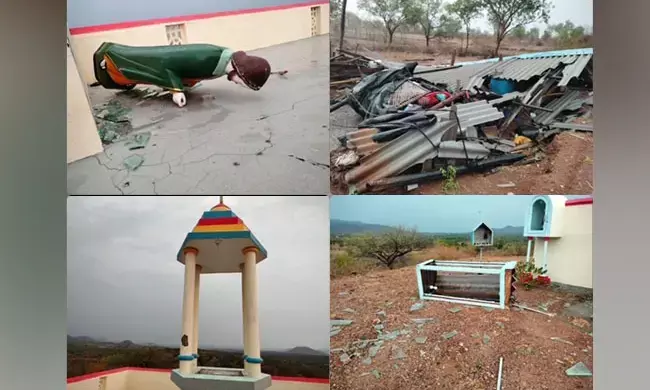 ಹನೂರು ತಾಲ್ಲೂಕಿನ ಮರಿ ಮಂಗಲ ಗ್ರಾಮದಲ್ಲಿರುವ ಕ್ರೈಸ್ತ ಧರ್ಮದ ಚರ್ಚ್ ಮುಂಭಾಗದಲ್ಲಿ ಇರಿಸಲಾಗಿದ್ದ ಏಸು ಕ್ರೈಸ್ತನ ಮೂರ್ತಿಯು ಗಾಳಿ ಮಳೆಯ ರಭಸಕ್ಕೆ ಧರೆಗುರುಳಿದೆ. ಹಲವಾರು ಶೆಡ್ ಗಳು ನಾಶವಾಗಿದ್ದು, ಜನರು ವಾಸಿಸಲು ಪರದಾಡುವಂತಾಗಿದೆ. ಇದರ ನಡುವೆ ತೇಗದ ಮರಗಳು ಧರಾಶಾಹಿಯಾಗಿದ್ದು, ಅದೃಷ್ಟವಷಾತ್ ಯಾವುದೇ ಪ್ರಾಣಪಾಯವಾಗಿಲ್ಲ ಎಂದು ತಿಳಿದು ಬಂದಿದೆ.