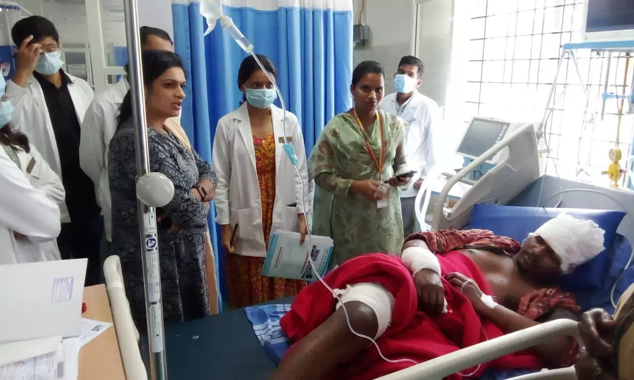 ಹುಲಿ ದಾಳಿಗೆ ತುತ್ತಾಗಿ ಆಸ್ಪತ್ರೆಯಲ್ಲಿ ಚಿಕಿತ್ಸೆ ಪಡೆಯುತ್ತಿರುವ ರವಿಯವರನ್ನು ಜಿಲ್ಲಾ ಪರಿಶಿಷ್ಟ ವರ್ಗಗಳ ಕಲ್ಯಾಣಧಿಕಾರಿ ಎಚ್.ಎಸ್. ಬಿಂದ್ಯಾ ಬೇಟಿ ನೀಡಿ ಆರೋಗ್ಯ ವಿಚಾರಿಸಿದರು.