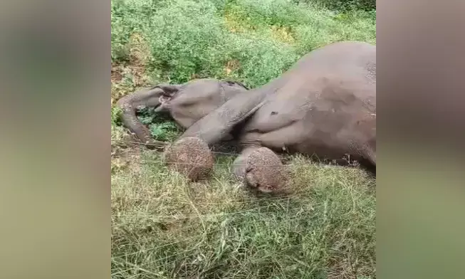 ಚಾಮರಾಜನಗರ : ಜಿಲ್ಲೆಯ ಬಂಡೀಪುರ ಹುಲಿ ಸಂರಕ್ಷಿತ ಅರಣ್ಯ ಪ್ರದೇಶದ ಮಂಗಲ ಗ್ರಾಮದ ಸಮೀಪದ ಕಾಡಂಚಿನ ಜಮೀನೊಂದರಲ್ಲಿ ಕಾಡಾನೆಯೊಂದು ವಿದ್ಯುತ್ ತಂತಿ ತಗುಲಿ ಮೃತಪಟ್ಟಿರುವ ಹೃದಯವಿದ್ರಾವಕ ಘಟನೆ ಬುಧವಾರ ನಡೆದಿದೆ.