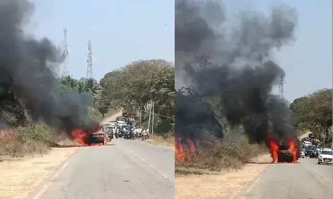 ಚಾಮರಾಜನಗರ | ಚಲಿಸುತ್ತಿದ್ದ ಕಾರಿನಲ್ಲಿ ಕಾಣಿಸಿಕೊಂಡ ಬೆಂಕಿ; ಚಾಲಕ ಅಪಾಯದಿಂದ ಪಾರು