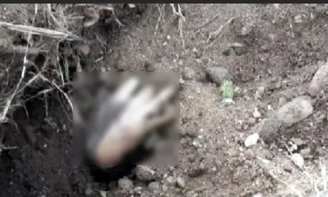 ಚಾಮರಾಜನಗರ : ಚಾಮರಾಜನಗರ ಜಿಲ್ಲೆಯ ಕೊಳ್ಳೇಗಾಲ ತಾಲೂಕಿನ ಹಳೇ ಹಂಪಾಪುರ ಗ್ರಾಮದ ಹೊರವಲಯದ ಭೂಮಿಯ ಹಳ್ಳದಲ್ಲಿ ಹುದುಗಿ ಹೋಗಿರುವ ಮನುಷ್ಯನ ಮುಂಗೈ ಮೇಲೆ ಬಂದ ಸ್ಥಿತಿಯಲ್ಲಿ ಪತ್ತೆಯಾಗಿದ್ದು, ಸಮೀಪದಲ್ಲೇ ಪೂಜೆಯ ಕೆಲವು ವಸ್ತುಗಳು ಬಿದ್ದಿರುವುದು ವಾಮಾಚಾರ ಶಂಕೆ ಮೂಡಿಸಿದೆ.