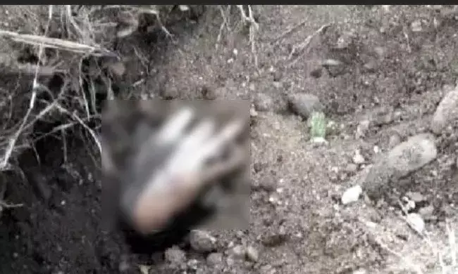 ಹೂತಿಟ್ಟಿದ್ದ ಮೃತದೇಹದ ಮುಂಗೈ ಹೊರಗೆ ಕಾಣಿಸಿಕೊಂಡಿರುವುದು