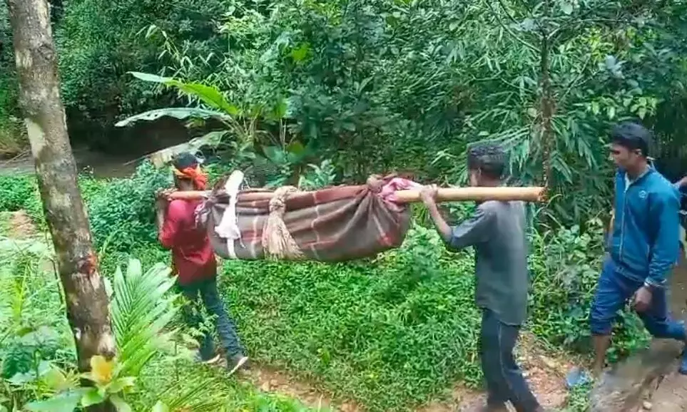 ಕೋಣೇಗೋಡು ಗ್ರಾಮಕ್ಕೆ ರಸ್ತೆ ಸೌಲಭ್ಯದ ಕೊರತೆ; ಜೋಳಿಗೆಯಲ್ಲಿ ಯುವಕನ ಮೃತದೇಹ ಸಾಗಿಸಿದ ಸಂಬಂಧಿಗಳು