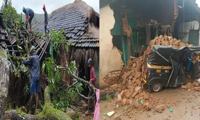 ಕಳಸ ತಾಲೂಕಿನ ಕಾರ್ಲೆ ಗ್ರಾಮದಲ್ಲಿ ವೃದ್ದೆಯೊಬ್ಬರ ಮನೆ ಮೇಲೆ ಮರ ಬಿದ್ದು ಮನೆ ಜಖಂ ಗೊಂಡಿದ್ದರೆ, ವೃದ್ದೆ ಗಂಭೀರವಾಗಿ ಗಾಯಗೊಂಡಿದ್ದಾರೆ. ಭಾರೀ ಗಾಳಿಯಿಂದಾಗಿ ಮಲೆನಾಡು ಭಾಗದಲ್ಲಿ ಜನರ ಆತಂಕದಿಂದಲೇ ಬದುಕುವಂತಾಗಿದ್ದು, ಮರಗಳು ಮನೆಗಳ ಮೇಲೆ ಬಿದ್ದು ಪ್ರಾಣಕ್ಕೆ ಕುತ್ತು ತರುವ ಭೀತಿಯಲ್ಲಿ ದಿನ ಕಳೆಯುತ್ತಿದ್ದಾರೆ.