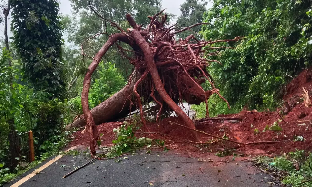 ಚಿಕ್ಕಮಗಳೂರು ತಾಲೂಕಿನ ಕೈಮರದಿಂದ ಬಾಬಾ ಬುಡನ್ಗಿರಿ ಹೋಗುವ ರಾಜ್ಯ ಹೆದ್ದಾರಿಯಲ್ಲಿ ಭಾರೀ ಮಳೆ, ಗಾಳಿ ಪರಿಣಾಮ ಭಾರೀ ಗಾತ್ರದ ಮರವೊಂದು ರಸ್ತೆ ಉರುಳಿ ಬಿದ್ದ ಪರಿಣಾಮ ಹಲವು ಗಂಟೆಗಳ ಕಾಲ ರಸ್ತೆಯಲ್ಲಿ ವಾಹನಗಳ ಸಂಚಾರ ಸ್ತಬ್ಧಗೊಂಡಿತ್ತು. ಪೊಲೀಸರು, ಅಗ್ನಿಶಾಮಕದಳ ಹಾಗೂ ಸ್ಥಳೀಯರು ರಸ್ತೆಗೆ ಬಿದ್ದಿದ್ದ ಮರ ತೆರವು ಮಾಡಿದ್ದರಿಂದ ವಾಹನಗಳ ಸಂಚಾರ ಪುನಾರಂಭಗೊಂಡಿದೆ. ಕೊಪ್ಪ ತಾಲೂಕಿನ ಕೊಗ್ರೆ ಸಮೀಪದ ವೆಂಕಟರಮಣ ದೇವಾಲಯದ ಬಳಿ ಬೃಹತ್ ಗಾತ್ರದ ಮರ ಬುಡಸಹಿತ ರಸ್ತೆ ಮೇಲೆ ಉರುಳಿ ಬಿದ್ದ ಪರಿಣಾಮ ಗಂಟೆಗೂ ಹೆಚ್ಚು ಕಾಲ ವಾಹನ ಸಂಚಾರಕ್ಕೆ ಅಡಚಣೆ ಉಂಟಾಗಿತ್ತು. ಶೃಂಗೇರಿ-ಮಂಗಳೂರು ಹೆದ್ದಾರಿಯಲ್ಲಿರುವ ನೆಮ್ಮಾರು ಗ್ರಾಮದ ಬಳಿ ರಸ್ತೆ ಬದಿಯಲ್ಲಿ ಭೂ ಕುಸಿತ ಉಂಟಾಗಿ ರಸ್ತೆ ಮೇಲೆ ಭಾರೀ ಮಣ್ಣು ಉರುಳಿದ್ದು, ಜೆಸಿಬಿಯಂತ್ರದಿಂದ ಮಣ್ಣು ತೆರವು ಮಾಡಿ ವಾಹನ ಸಂಚಾರಕ್ಕೆ ರಸ್ತೆಯನ್ನು ಮುಕ್ತಗೊಳಿಸಲಾಗಿದೆ.