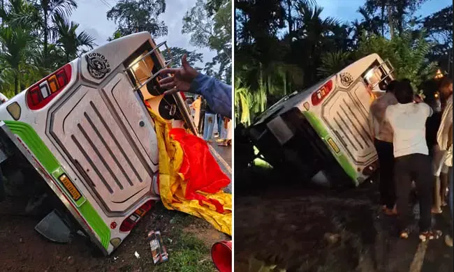 ಕೊಪ್ಪ: ಪ್ರವಾಸಿ ಬಸ್ ಪಲ್ಟಿ; ಮೂವರಿಗೆ ಗಾಯ