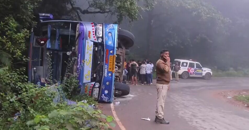 ಕೊಟ್ಟಿಗೆಹಾರ: ಪ್ರವಾಸಿಗರಿದ್ದ ಬಸ್ ಪಲ್ಟಿ: 5 ಮಂದಿಗೆ ಗಂಭೀರ ಗಾಯ