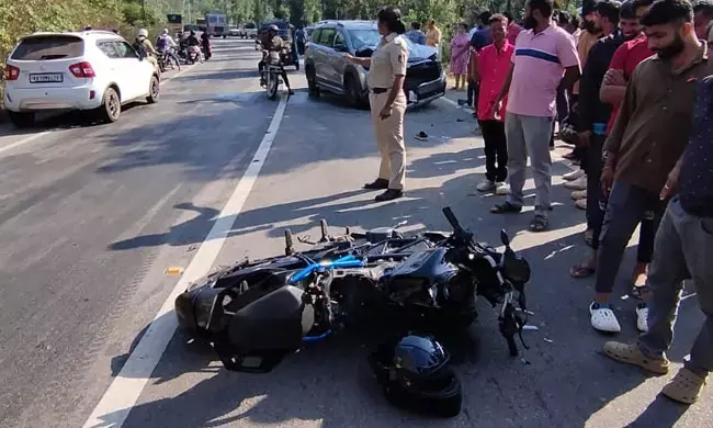 ಬೆಂಗಳೂರಿನಿಂದ ಧರ್ಮಸ್ಥಳಕ್ಕೆ ತೆರಳುತ್ತಿದ್ದ ಕಾರು ಹಾಗೂ ಮೂಡಿಗೆರೆ ಕಡೆ ಹೋಗುತ್ತಿದ್ದ ಬೈಕ್ ಮುಖಾಮುಖಿ ಢಿಕ್ಕಿಯಾಗಿದೆ.