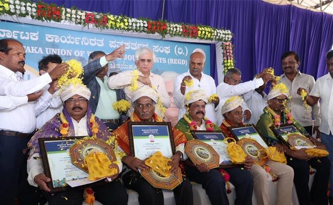 ಚಿತ್ರದುರ್ಗ ಜಿಲ್ಲೆಯ ಎಸ್.ಆರ್.ಎಸ್ ಕಾಲೇಜು ಆವರಣದಲ್ಲಿ ನಡೆದ ಕರ್ನಾಟಕ ಕಾರ್ಯನಿರತ ಪತ್ರಕರ್ತರ ಸಂಘದ ಕಾರ್ಯಕ್ರಮದಲ್ಲಿ ಖ್ಯಾತ ಪತ್ರಕರ್ತ ಪಿ.ಸಾಯಿನಾಥ್ ಅವರು ಪ್ರಶಸ್ತಿ ಪ್ರದಾನ ಮಾಡಿದರು.