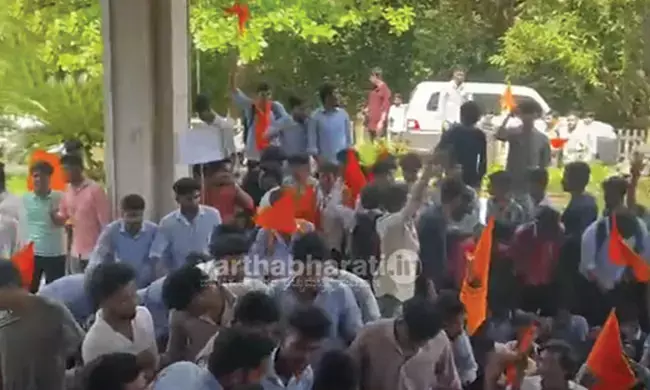 ಶುಕ್ರವಾರದಂದು ಬೆಳಿಗ್ಗೆಯೇ ವಿವಿಯ ಕ್ಯಾಂಪಸ್ ನಲ್ಲಿ ಸೇರಿದ್ದ ಎಬಿವಿಪಿ ನೇತೃತ್ವದಲ್ಲಿ ಜಮಾಯಿಸಿದ್ದ ವಿದ್ಯಾರ್ಥಿಗಳು ಬಳಿಕ ವಿಶ್ವವಿದ್ಯಾಲಯದ ಆಡಳಿತ ಸೌಧದ ಕಡೆಗೆ ಸಾಗಿ ಆಡಳಿತ ಸೌಧಕ್ಕೆ ಮುತ್ತಿಗೆ ಹಾಕಲು ಯತ್ನಿಸಿದ್ದಾರೆ. ಈ ಸಂದರ್ಭದಲ್ಲಿ ಪೊಲೀಸರು ಪ್ರತಿಭಟನಾ ಕಾರರನ್ನು ತಡೆಯಲು ಬ್ಯಾರಿಕೇಡ್ ಹಾಕಿದ್ದು, ಇದನ್ನು ಕೆಳಹಾಕಿ ಮುನ್ನುಗಿದ್ದರು. ಬಳಿಕ ಪೊಲೀಸರು ಆಡಳಿತ ಸೌಧದ ಗಾಜಿನ ಬಾಗಿಲನ್ನು ಹಾಕಿದ್ದು ವಿದ್ಯಾರ್ಥಿಗಳು ತಳ್ಳಾಟ ನಡೆಸಿದಾಗ ಗಾಜು ಪುಡಿಪುಡಿಯಾಗಿ ಓರ್ವ ಪೋಲೀಸ್ ಹಾಗೂ ವಿದ್ಯಾರ್ಥಿಗೆ ಗಾಯವಾಗಿದೆ ಎಂದು ತಿಳಿದು ಬಂದಿದೆ.