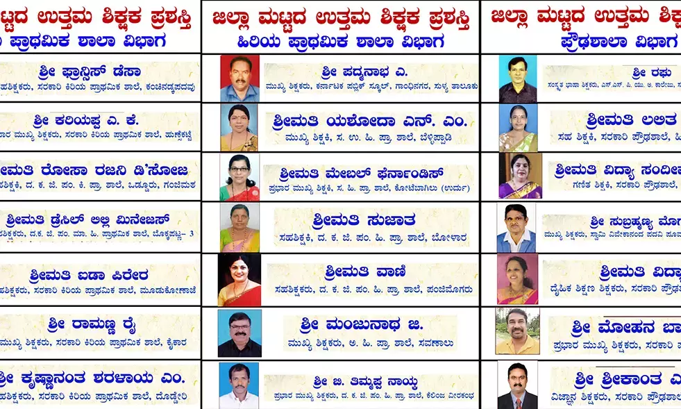 ದ.ಕ. ಜಿಲ್ಲಾ ಮಟ್ಟದ ಉತ್ತಮ ಶಿಕ್ಷಕ ಪ್ರಶಸ್ತಿ ಪ್ರಕಟ
