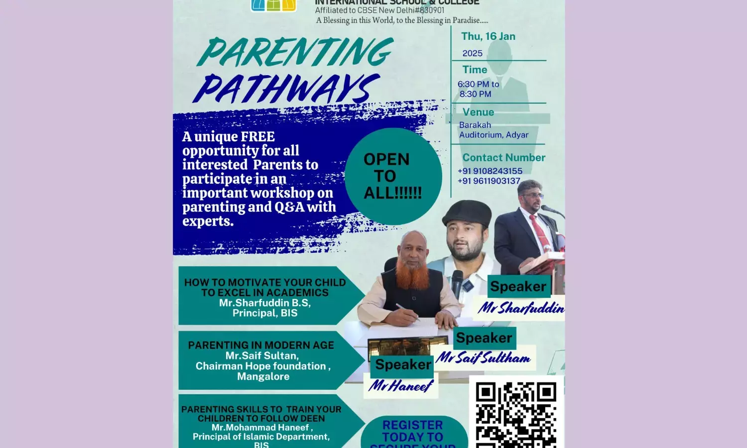 ಮಂಗಳೂರು: ಬರಕಾ ಇಂಟರ್ ನ್ಯಾಶನಲ್ ಸ್ಕೂಲ್ ಆ್ಯಂಡ್ ಕಾಲೇಜಿನಲ್ಲಿ ಜ.16ರಂದು ಸಂಜೆ 6:30ಕ್ಕೆ ಅಡ್ಯಾರ್ ನ ಬರಕಾ ಸಭಾಂಗಣದಲ್ಲಿ ಪೋಷಕರಿಗೆ ಪೋಷಕ ಕೌಶಲ್ಯಗಳ ಬಗ್ಗೆ ಉಚಿತ ಕಾರ್ಯಾಗಾರವನ್ನು ಆಯೋಜಿಸಲಾಗಿದೆ.