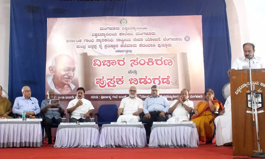 ನಗರದ ವಿಶ್ವವಿದ್ಯಾನಿಲಯ ಕಾಲೇಜಿನ ರವೀಂದ್ರ ಕಲಾಭವನದಲ್ಲಿ ಶುಕ್ರವಾರ, ಮಂಗಳೂರು ವಿಶ್ವವಿದ್ಯಾನಿಲಯ ಮಂಗಳಗಂಗೋತ್ರಿ ವಿಶ್ವವಿದ್ಯಾನಿಲಯ ಕಾಲೇಜು ಮಂಗಳೂರು, ಕರ್ನಾಟಕ ಗಾಂಧಿ ಸ್ಮಾರಕ ನಿಧಿ ರಾಷ್ಟ್ರೀಯ ಸೇವಾ ಯೋಜನೆ ಬೆಂಗಳೂರು, ಕುಂಬ್ರ ಜತ್ತಪ್ಪ ರೈ ಪ್ರತಿಷ್ಠಾನ, ಕಜೆಮಾರು ಕೆದಂಬಾಡಿ ಪುತ್ತೂರು ಇವರ ಸಹಭಾಗಿತ್ವದಲ್ಲಿ ಆಯೋಜಿಸಲಾಗಿದ್ದ "ವಿಚಾರ ಸಂಕಿರಣ ಮತ್ತು ಪುಸ್ತಕ ಬಿಡುಗಡೆ" ಕಾರ್ಯಕ್ರಮ ಉದ್ಘಾಟಿಸಿ ಮಾತನಾಡಿದರು. ಸ್ವಾತಂತ್ರ್ಯ ರಾಜಕೀಯ, ಆರ್ಥಿಕ, ನೈತಿಕ ಮತ್ತು ಬಡತನ ನಿರ್ಮೂಲನೆ ಯಂತಹ ಹಲವಾರು ಅಂಶಗಳನ್ನು ಒಳ ಗೊಂಡಿದೆ. ಅವುಗಳನ್ನು ನಾವು ಸಾಧಿಸಿದ್ದೇವೆಯೇ, ಸಂವಿಧಾನದಲ್ಲಿನ ಮೂಲಭೂತ ಕರ್ತವ್ಯಗಳ ಪಾಲನೆಯಾಗು ತ್ತಿದೆಯೇ ಎನ್ನುವ ಪ್ರಶ್ನೆ ಕೇಳಿಕೊಳ್ಳಬೇಕಾಗಿದೆ ಎಂದರು.