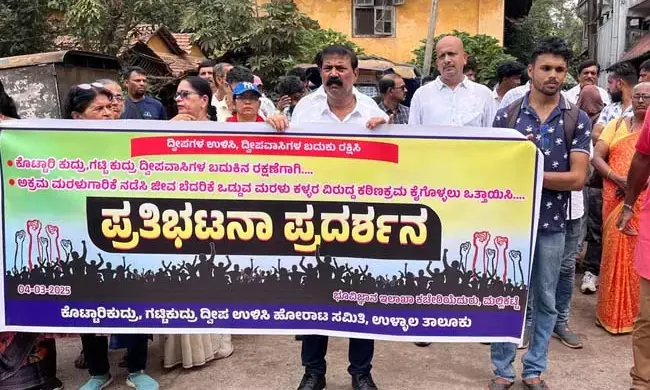 ಉಭಯ ದ್ವೀಪಗಳ ಉಳಿಸಿ ಹೋರಾಟ ಸಮಿತಿಯ ಅಧ್ಯಕ್ಷರೂ ಆಗಿರುವ ಅವರು, ಸಮಿತಿ ವತಿಯಿಂದ ಮಲ್ಲಿಕಟ್ಟೆಯಲ್ಲಿರುವ ಗಣಿ ಮತ್ತು ಭೂವಿಜ್ಞಾನ ಇಲಾಖೆಯ ಕಚೇರಿ ಎದುರು ಮಂಗಳವಾರ ಆಯೋಜಿಸಲಾದ ಪ್ರತಿಭಟನಾ ಪ್ರದರ್ಶನವನ್ನುದ್ದೇಶಿಸಿ ಮಾತನಾಡಿದರು.