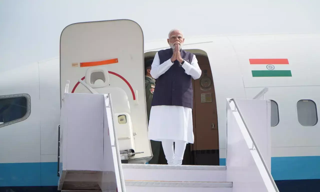 ಮಂಗಳೂರು, ನ.28: ಉಡುಪಿ ಶ್ರೀಕೃಷ್ಣ ಮಠದಲ್ಲಿ ನಡೆಯುವ ಕಾರ್ಯಕ್ರಮದಲ್ಲಿ ಭಾಗವಹಿಸುವುದಕ್ಕಾಗಿ ಪ್ರಧಾನಿ ನರೇಂದ್ರ ಮೋದಿ(PM Narendra Modi)ಯವರು ಶುಕ್ರವಾರ ಬೆಳಗ್ಗೆ ಮಂಗಳೂರಿಗೆ ಆಗಮಿಸಿದ್ದಾರೆ.