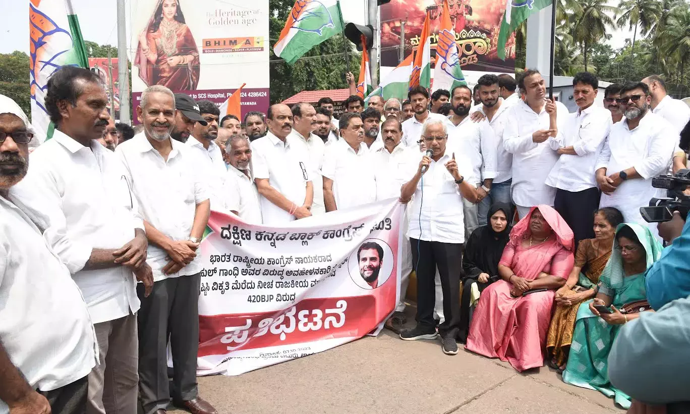 ಮಂಗಳೂರು ಮಹಾನಗರ ಪಾಲಿಕೆ ಬಳಿಯ ಮಹಾತ್ಮಗಾಂಧಿ ಪ್ರತಿಮೆ ಎದುರು ಶನಿವಾರ ರಾಹುಲ್ ಗಾಂಧಿ ಅವರ ವಿರುದ್ಧ ಪ್ರಧಾನಿ ಪ್ರಚೋದನಕಾರಿ ಹೇಳಿಕೆಯನ್ನು ನೀಡಿದ್ದಾರೆಂದು ಖಂಡಿಸಿ ದ.ಕ. ಜಿಲ್ಲಾ ಕಾಂಗ್ರೆಸ್ ವತಿಯಿಂದ ಆಯೋಜಿಸಲಾದ ಪ್ರತಿಭಟನೆಯನ್ನುದ್ದೇಶಿಸಿ ಅವರು ಮಾತನಾಡಿದರು.
