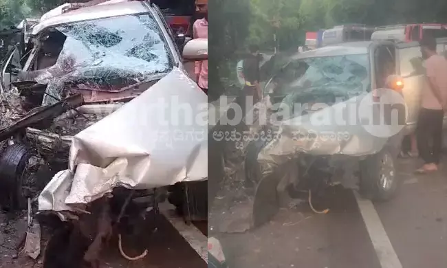 ಬೆಂಗಳೂರಿನಿಂದ ಮಂಗಳೂರು ಕಡೆಗೆ ಬರುತ್ತಿದ್ದ ಕಾರಿಗೆ ವಿರುದ್ಧ ದಿಕ್ಕಿನಿಂದ ಬರುತ್ತಿದ್ದ ಕಂಟೈನರ್ ಲಾರಿ ಶಿರಾಡಿ ಘಾಟ್ ನ ಕೆಂಪುಹೊಳೆ ಸಮೀಪ ಢಿಕ್ಕಿ ಹೊಡೆದಿದೆ.