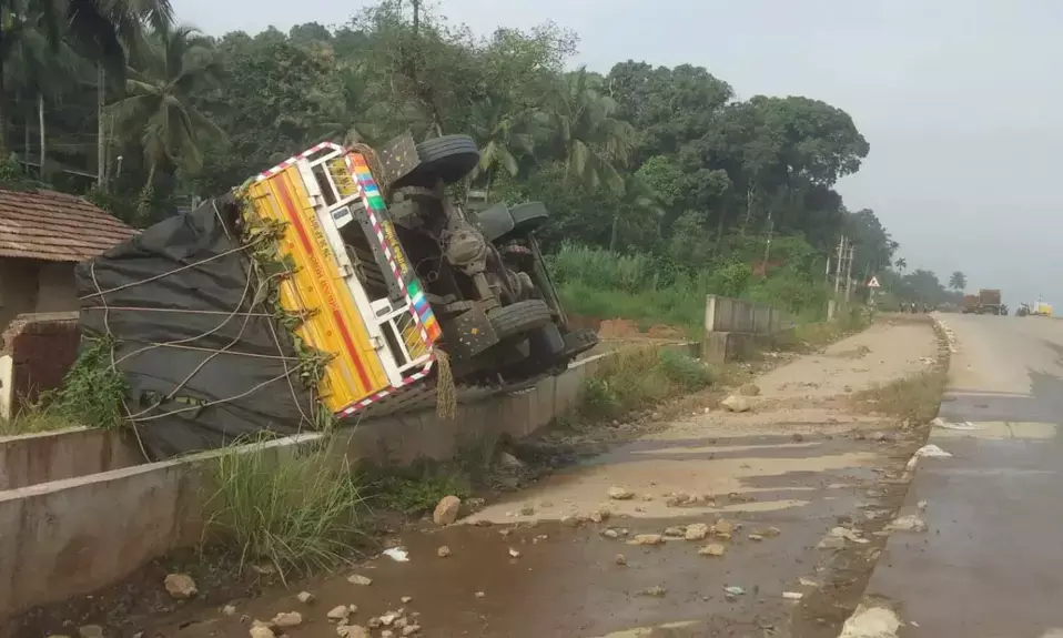 ಸೂರಿಕುಮೇರ್ ಬದ್ರಿಯಾ ಜುಮಾ ಮಸೀದಿ ಮುಂಭಾಗದ ರಾಷ್ಟ್ರೀಯ ಹೆದ್ದಾರಿಯ ಹೊಸ ರಸ್ತೆಯಲ್ಲಿ ತಮಿಳುನಾಡು ನೋಂದಾಯಿತ ಬಾಳೆಹಣ್ಣು ಸಾಗಾಟದ ಪಿಕಪ್ ವಾಹನವು ಪಲ್ಟಿ ಹೊಡೆದು ರಸ್ತೆ ಬದಿಯ ಚರಂಡಿಯೊಳಗೆ ನಿಂತಿದೆ, ನಿದ್ದೆಯ ಮಂಪರಿನಲ್ಲಿ ಬೆಳಗ್ಗಿನ ಜಾವ ಅಪಘಾತ ಸಂಭವಿಸಿದ್ದು ಚಾಲಕ ಸಣ್ಣ ಪುಟ್ಟ ಗಾಯದೊಂದಿಗೆ ಪಾರಾಗಿದ್ದಾನೆ.