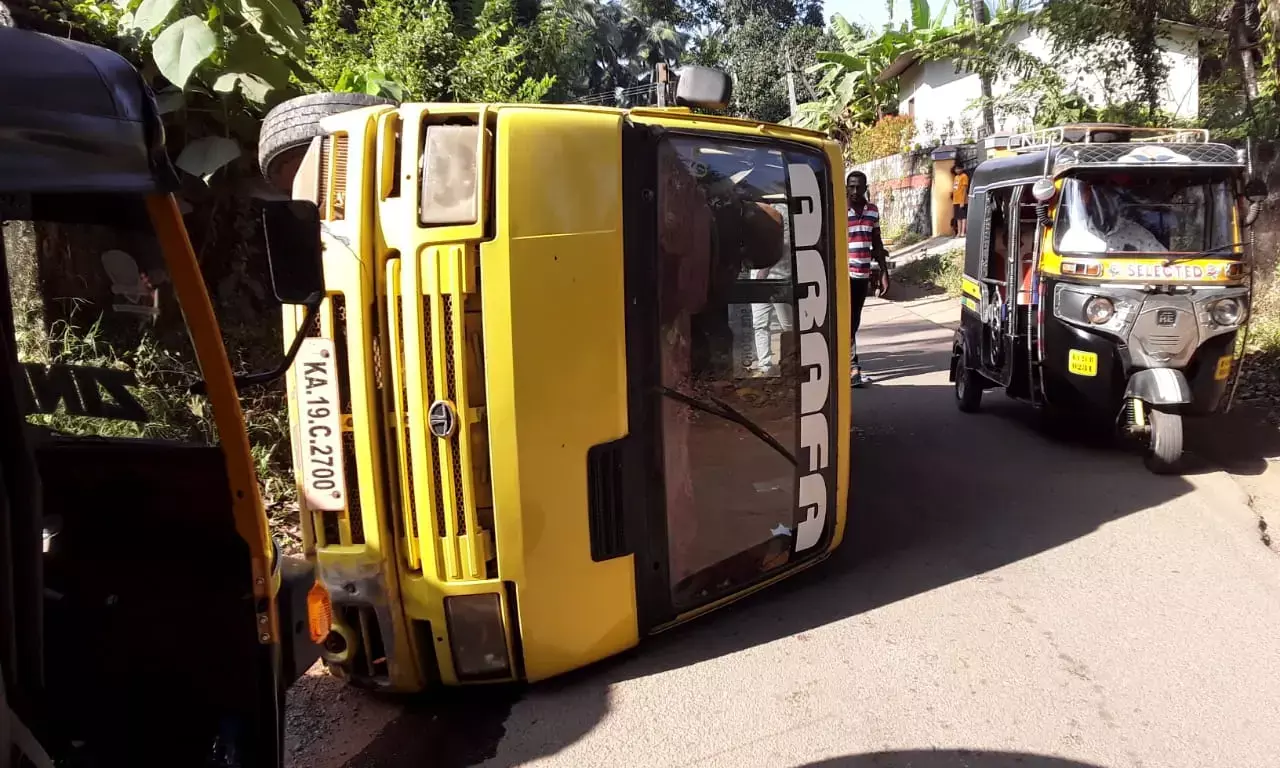 ಉಪ್ಪಿನಂಗಡಿ: ಶಾಲಾ ಬಸ್ ಪಲ್ಟಿ; ಅಪಾಯದಿಂದ ಪಾರಾದ ಮಕ್ಕಳು