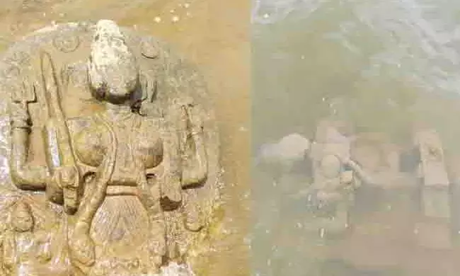 ಕೆರೆಯಲ್ಲಿ ಪತ್ತೆಯಾಗಿರುವ ಶಿಲ್ಪ
