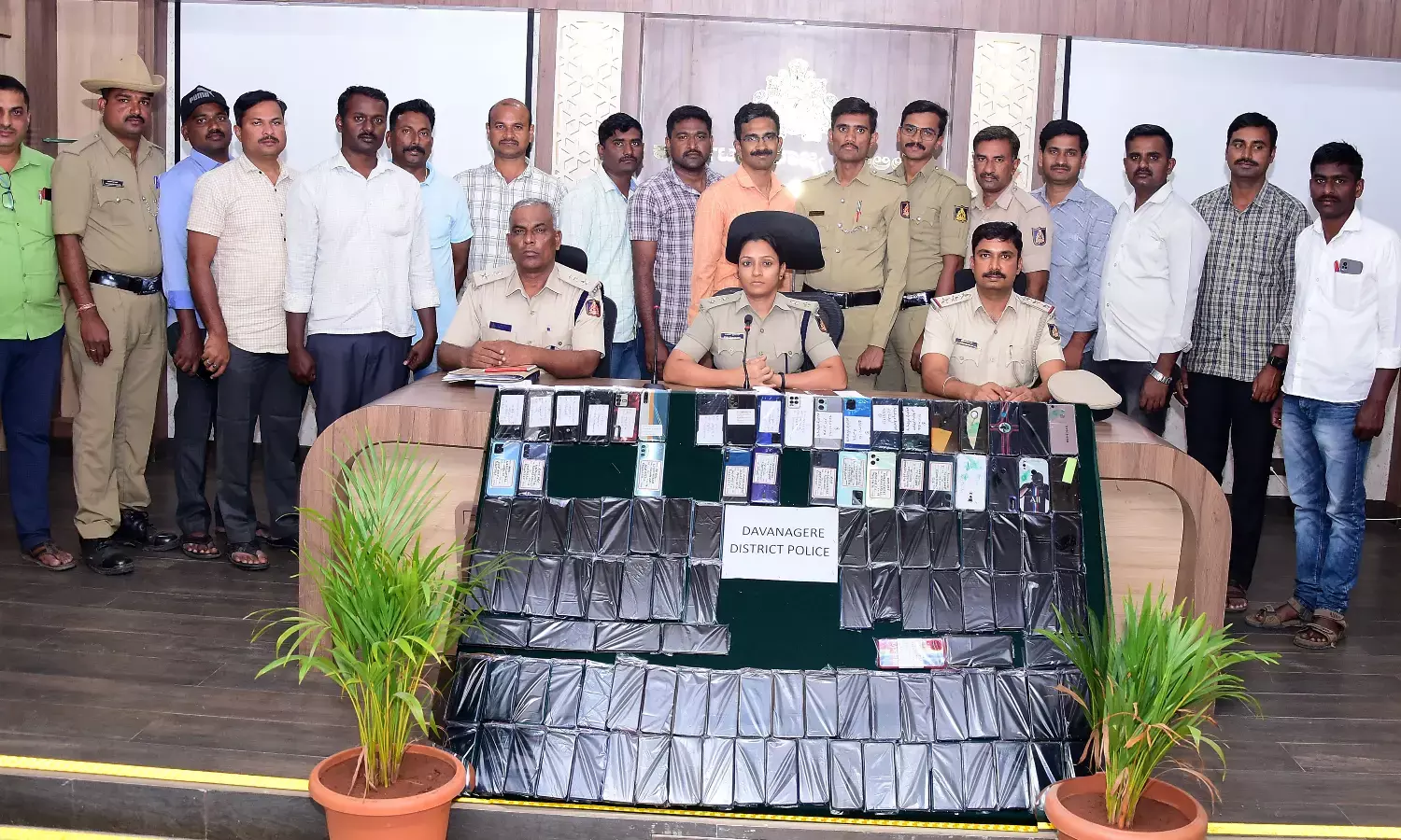 ದಾವಣಗೆರೆ| ಕಳ್ಳತನವಾಗಿದ್ದ ಮೊಬೈಲ್ ಗಳನ್ನು ವಾರಸುದಾರರಿಗೆ ಹಿಂದಿರುಗಿಸಿದ ಪೊಲೀಸರು.