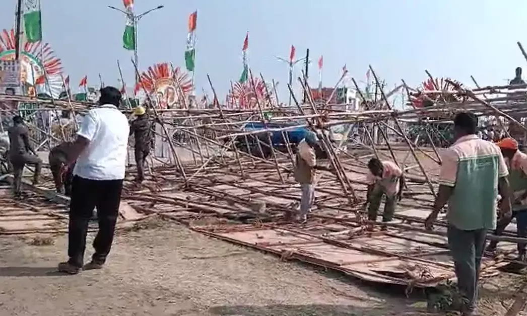 ಸದ್ಯ ಗಾಯಾಳುಗಳು ಪ್ರಾಣಾಪಾಯದಿಂದ ಪಾರಾಗಿದ್ದು, ಸ್ಥಳದಲ್ಲಿ ಬಿಗಿ ಪೊಲೀಸ್ ಬಂದೋಬಸ್ತ್ ಮುಂದುವರಿಸಲಾಗಿದೆ. ಕುಸಿದ ಕಟೌಟ್ ಅನ್ನು ತೆರವುಗೊಳಿಸಿ, ಅಗತ್ಯ ಮುನ್ನೆಚ್ಚರಿಕೆ ಕ್ರಮಗಳೊಂದಿಗೆ ಕಾರ್ಯಕ್ರಮ ಮುಂದುವರಿಸಲು ಅವಕಾಶ ಕಲ್ಪಿಸಲಾಗಿದೆ.