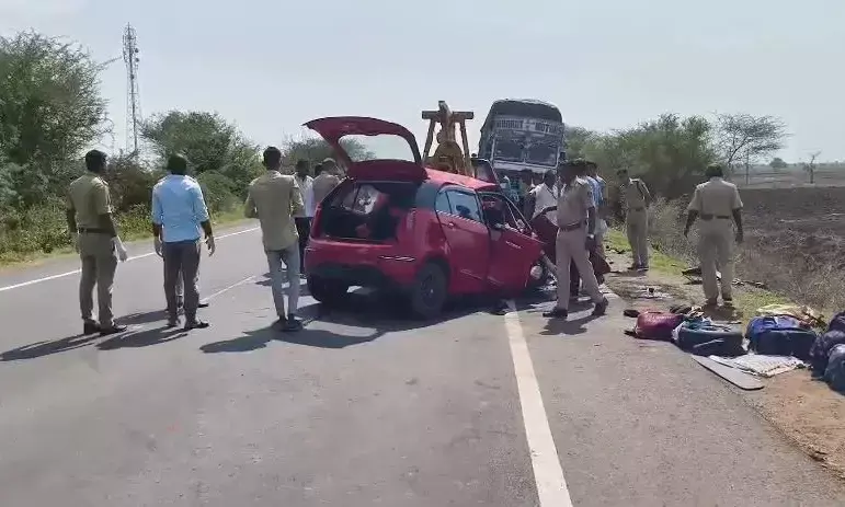ಲಾರಿಯೊಂದು ಕಾರಿಗೆ ಢಿಕ್ಕಿ ಹೊಡೆದು ಈ ಅಪಘಾತ ಸಂಭವಿಸಿದೆ. ಕಾರಿನಲ್ಲಿದ್ದ ಶಶಿಕಲಾ, ಶ್ವೇತಾ, ಅಂಜಲಿ, ಸಂದೀಪ್ ಮತ್ತು ವಿಠಲ್ ಎಂಬವರು ಸ್ಥಳದಲ್ಲೇ ಮೃತಪಟ್ಟಿದ್ದಾರೆನ್ನಲಾಗಿದೆ. ಮೃತರನ್ನು ಶಿವಮೊಗ್ಗ ಜಿಲ್ಲೆಯ ಸಾಗರ ಮೂಲದವರು ಎಂದು ಗುರುತಿಸಲಾಗಿದೆ.